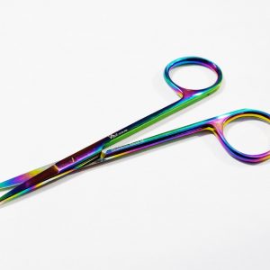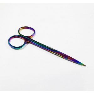 1 red Iris Scissors angled surgical Dental surgery Micro serrated shears 12 cm made of stainless steel. available in different sizes. 4.4.5, 5, 5.5, 6. Black and golden ring