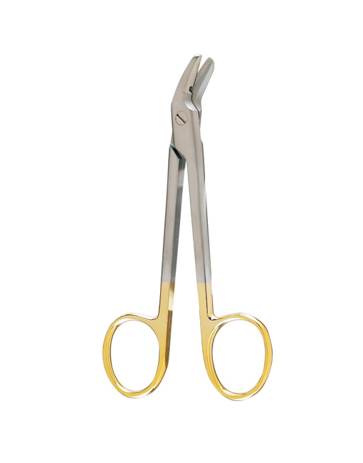 Miltex Wire Cutting Scissors Angled to side, one serrated blade, Carb-N-Sert inserts 12.1 cm